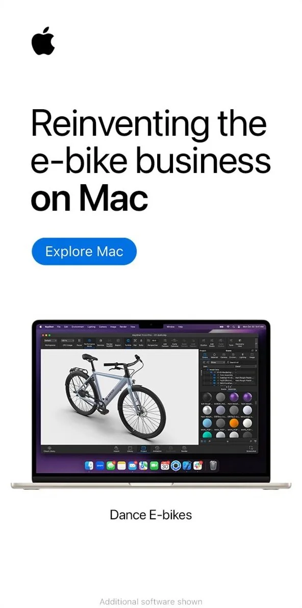 Apple launched an “on Mac” campaign that highlighted 3 stories of users employing Mac products: Dance – an innovative e-bike subscription service, Jason Terry – a astronomy researcher, and Pink Pantheress – a musical artist.