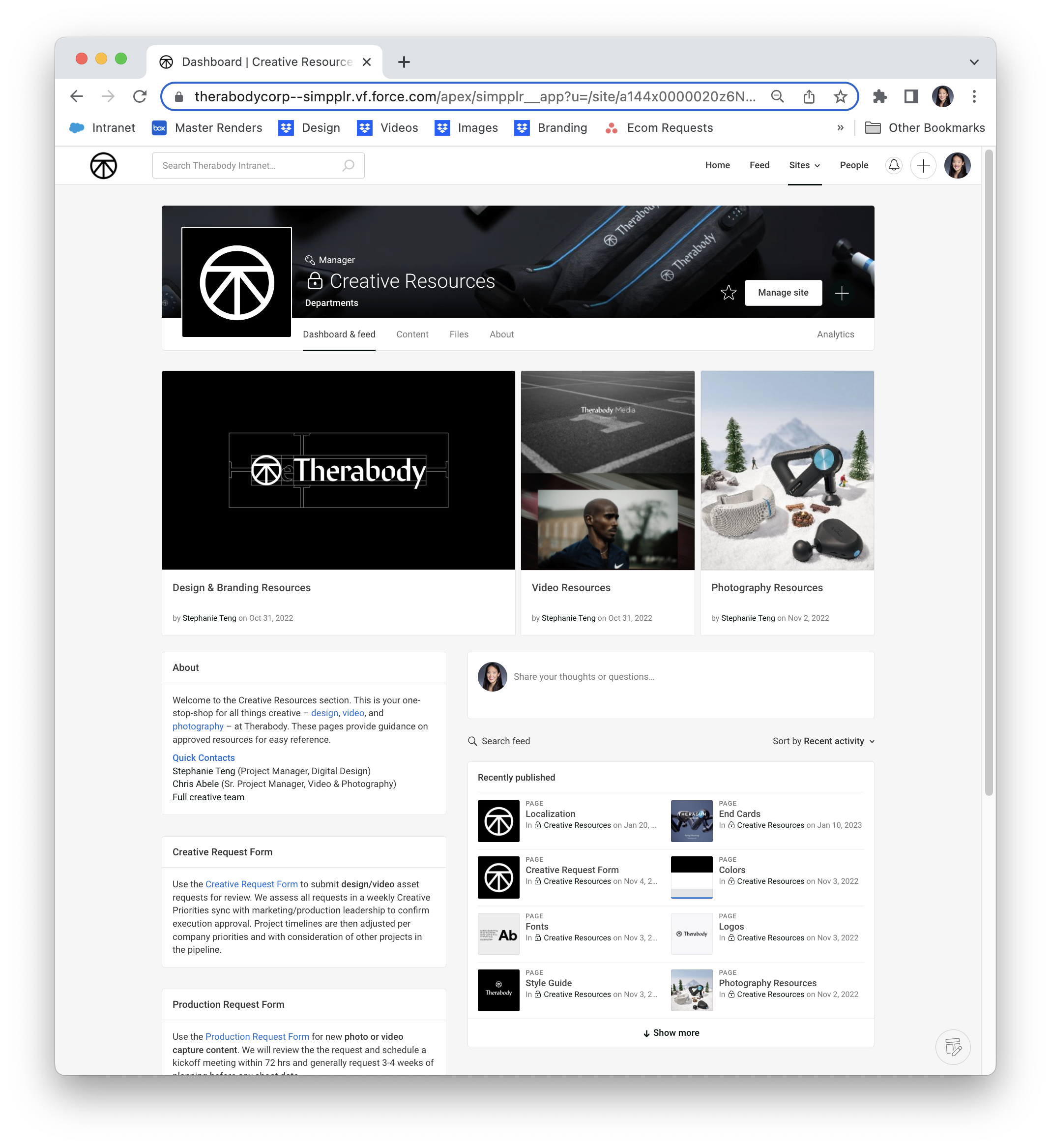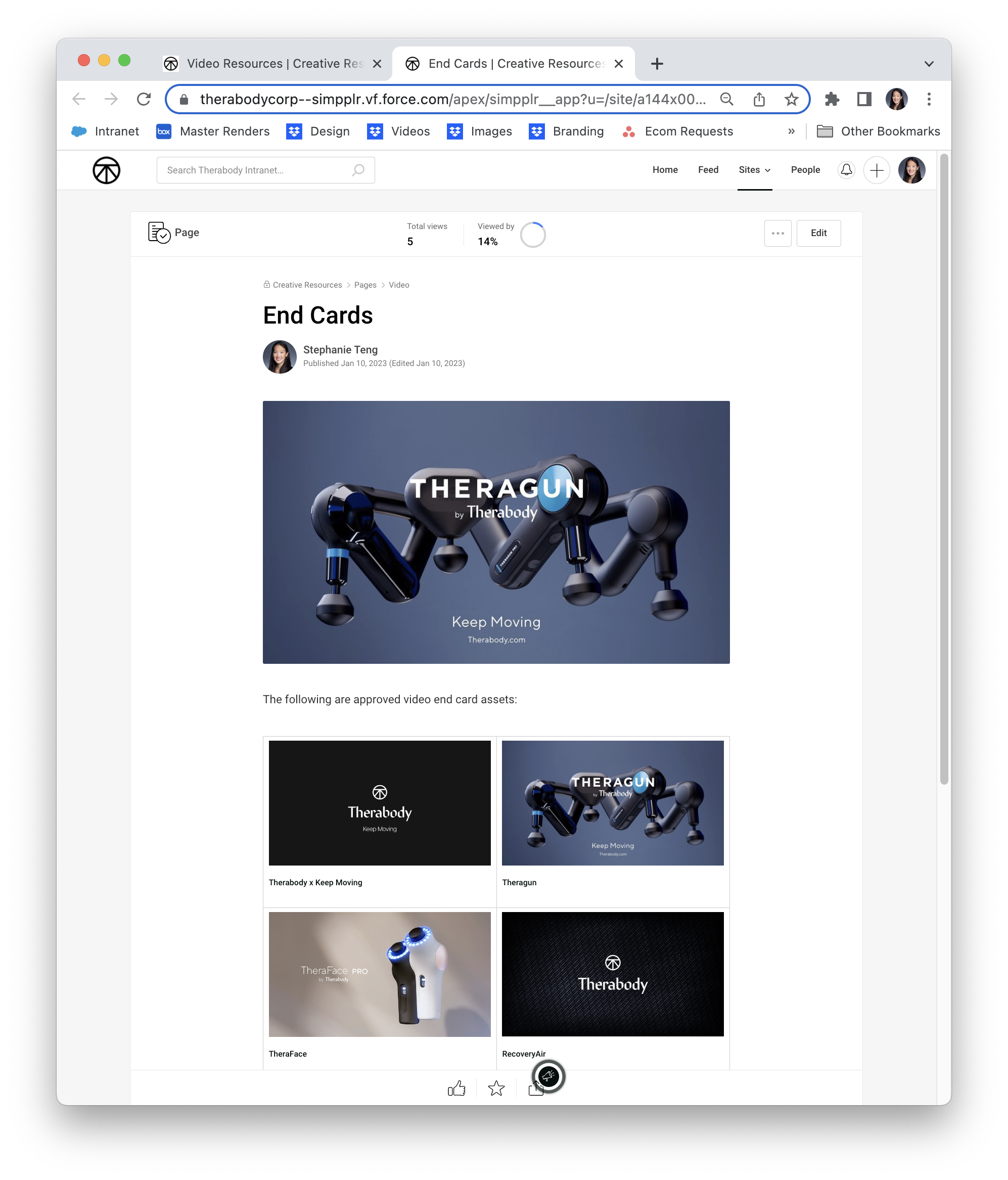 Therabody Intranet Design & Creative Resource Management
